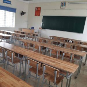 Nhà trường nên ưu tiên bàn ghế có khung thép sơn tĩnh điện, mặt bàn từ gỗ công nghiệp hoặc nhựa composite chống thấm, chống xước, đảm bảo an toàn sức khỏe, dễ lau chùi và có tuổi thọ cao, phù hợp sử dụng trong môi trường lớp học đông học sinh.