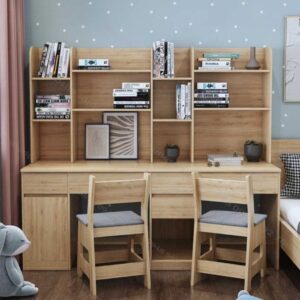 Phù hợp gia đình có hai con cùng độ tuổi. Bàn học đôi giúp tiết kiệm diện tích và tạo không gian học tập chung, tăng tính tương tác giữa các bé.