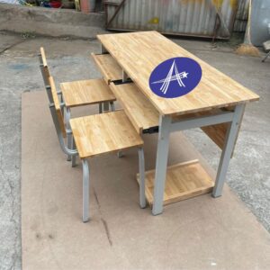 Đây là mẫu bàn ghế truyền thống, được sử dụng rộng rãi tại nhiều trường học. Ưu điểm là tiết kiệm diện tích, chi phí và tạo sự đồng bộ cho lớp học. Tuy nhiên, nhược điểm là khó di chuyển linh hoạt khi sắp xếp lại không gian.