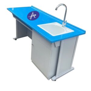 Bàn được thiết kế chịu được môi trường phòng thí nghiệm, có khả năng chống hóa chất, chống ăn mòn. Chân bàn bằng nhựa kỹ thuật cao cấp, hạn chế gỉ sét, đảm bảo an toàn khi học sinh thực hành thí nghiệm.